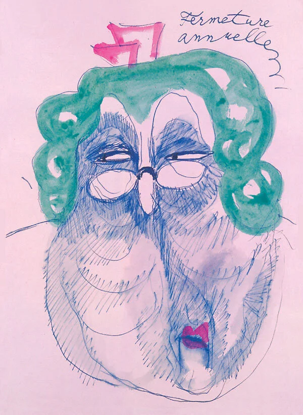 In den 70er Jahren keimte dann seine Liebe zu Agatha Christie und ihrer unsterblichen Miss Marple. Er entwendete seinen Neffen rosa und grünes Zeichenpapier, steuerte eigenes weisses bei und füllte wieder Seite um Seite, diesmal mit dem Faltenwurf von Doppelkinn und Tränensäcken der Schauspielerin Margret Rutherford, die in vielen Verfilmungen die Meisterdetektivin dargestellt hatte.